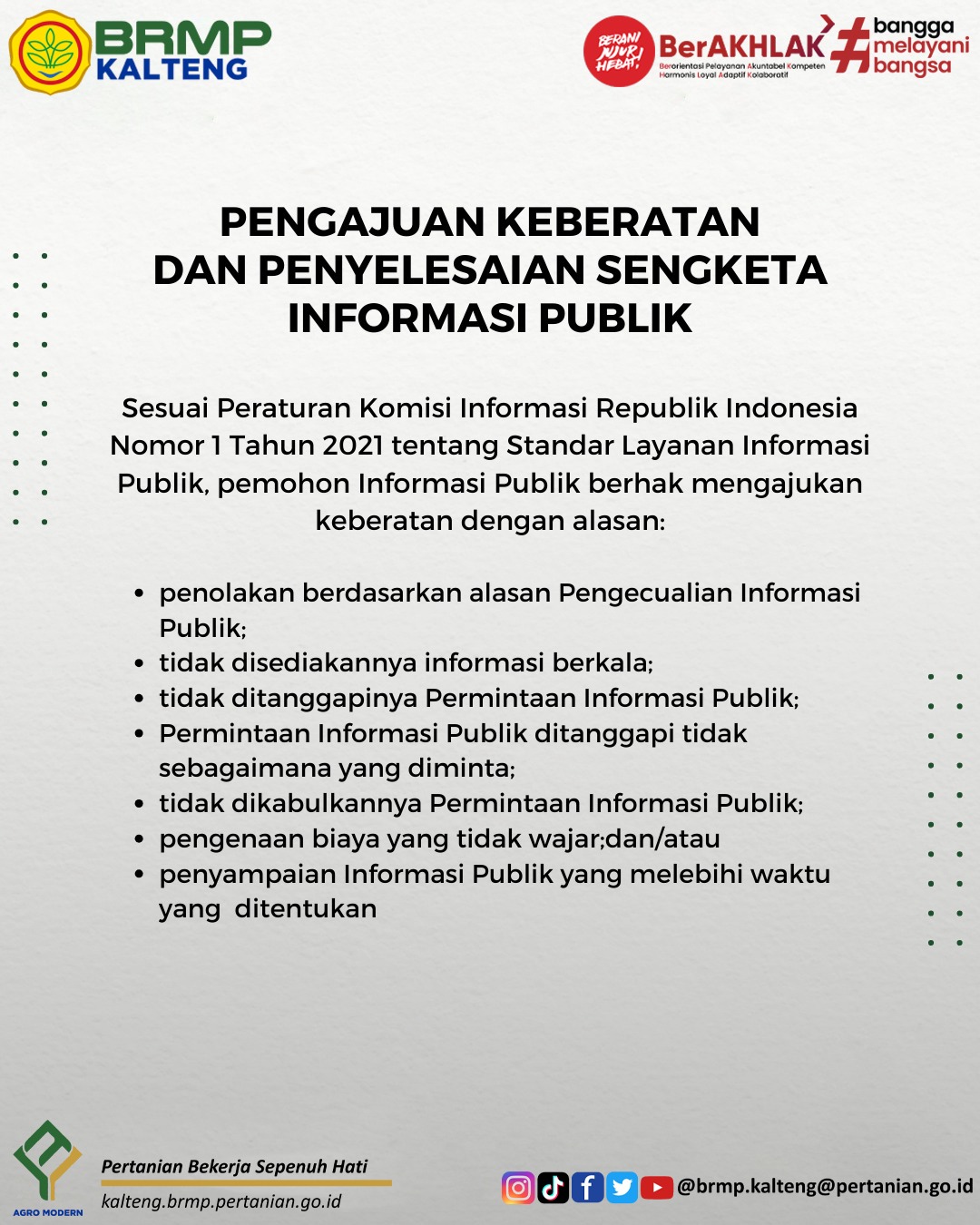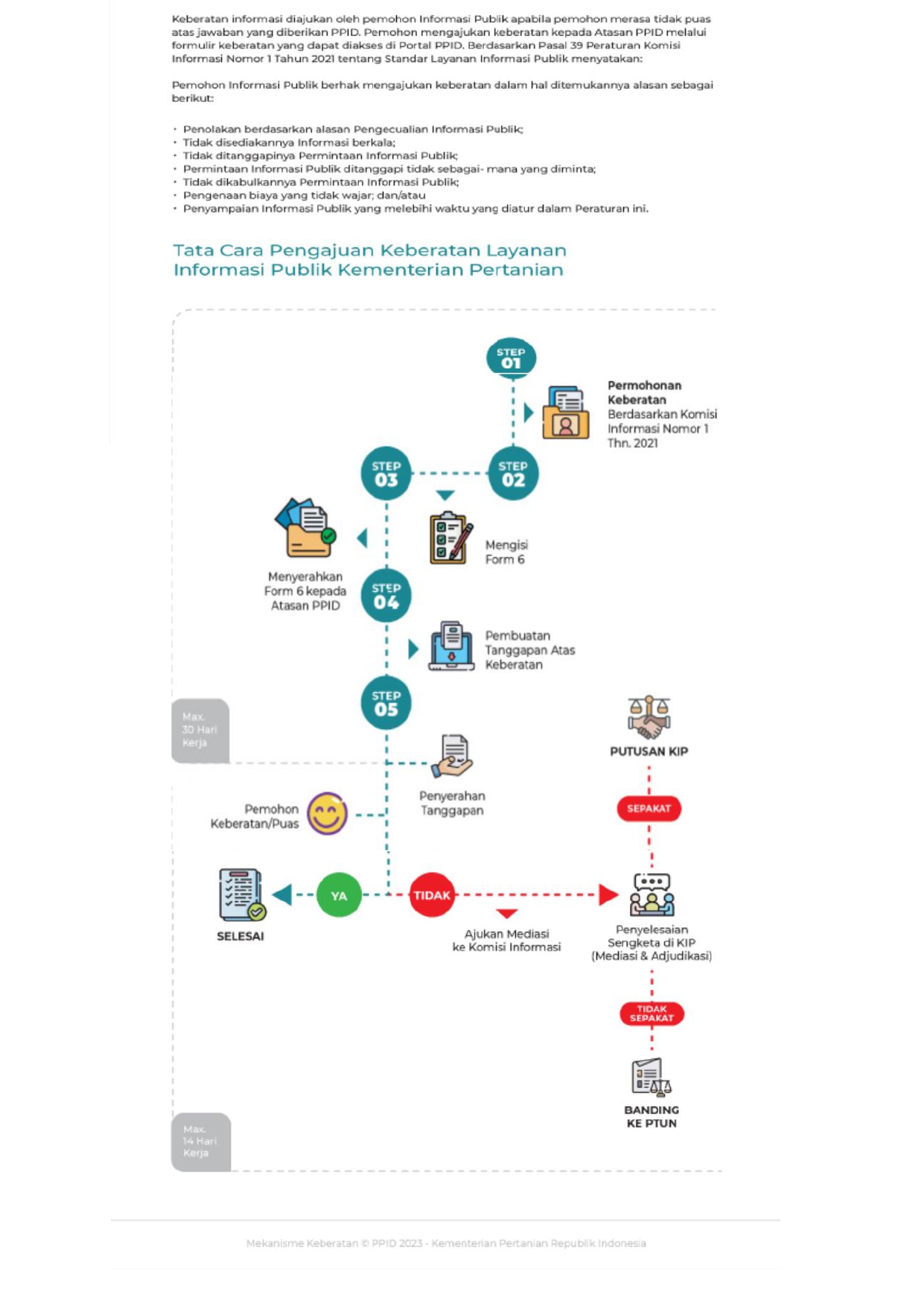 Setiap pemohon informasi publik dapat mengajukan keberatan secara tertulis kepada atasan Pejabat Pengelola Informasi dan Dokumentasi dengan alasan sebagaimana ditetapkan dalam pasal 35 Undang-Undang Nomor 14 Tahun 2008. Keberatan diajukan oleh Pemohon Informasi Publik dalam jangka waktu paling lambat 30 (tiga puluh) hari kerja setelah yang bersangkutan menemukan alasan keberatan.